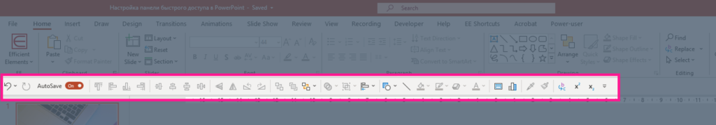 Простой и бесплатный способ ускорить работу над слайдами в PowerPoint — настроить панель быстрого доступа (Quick Access Toolbar). Это дополнительный ряд кнопок под (или над) основной лентой.